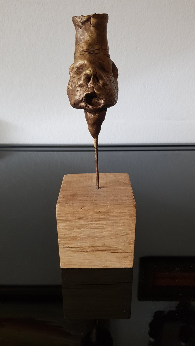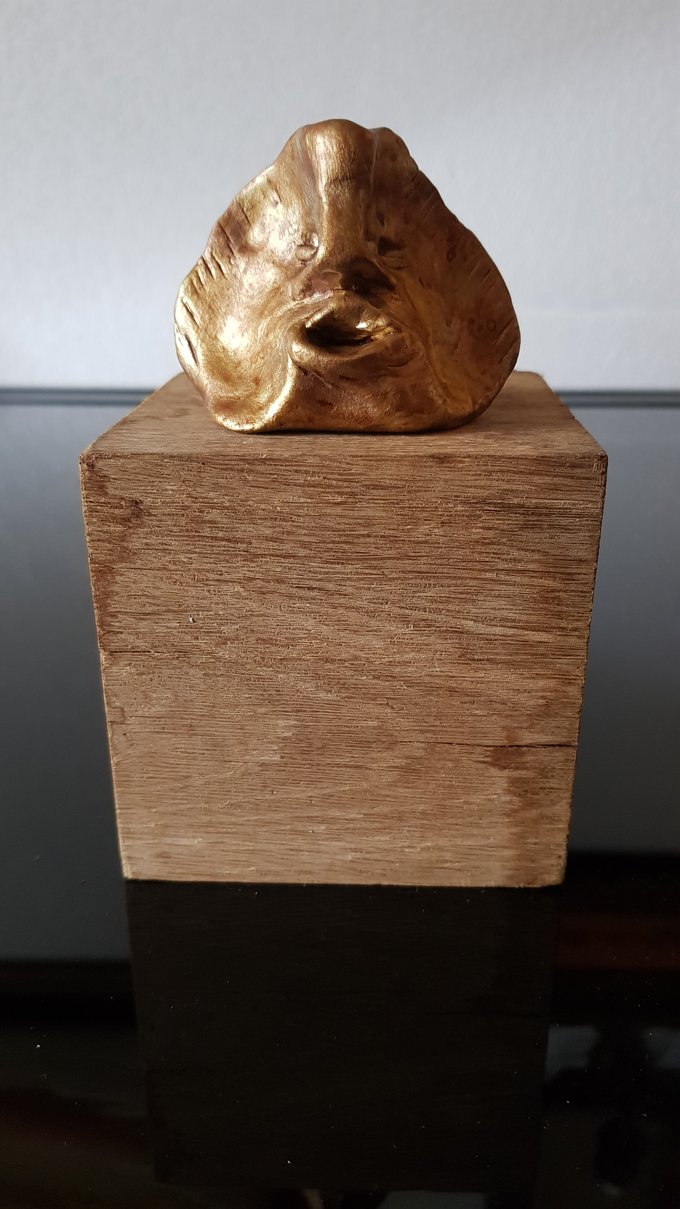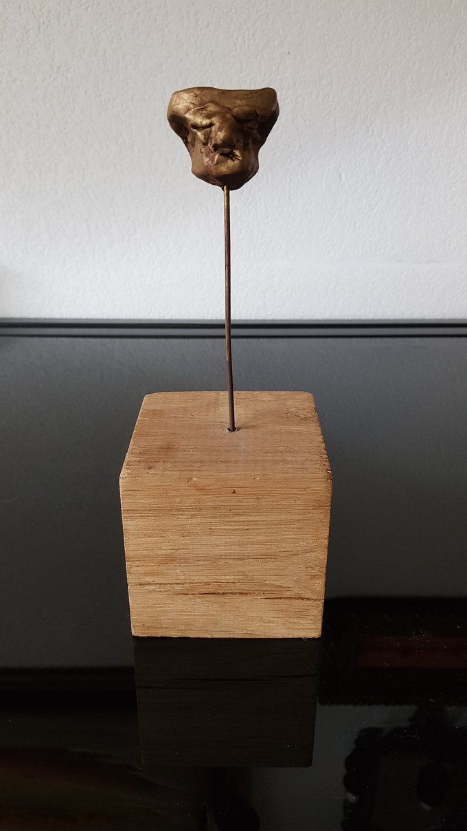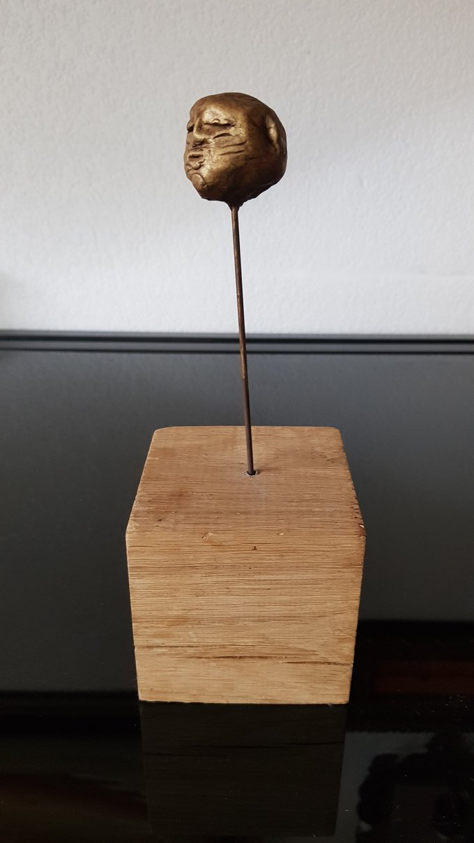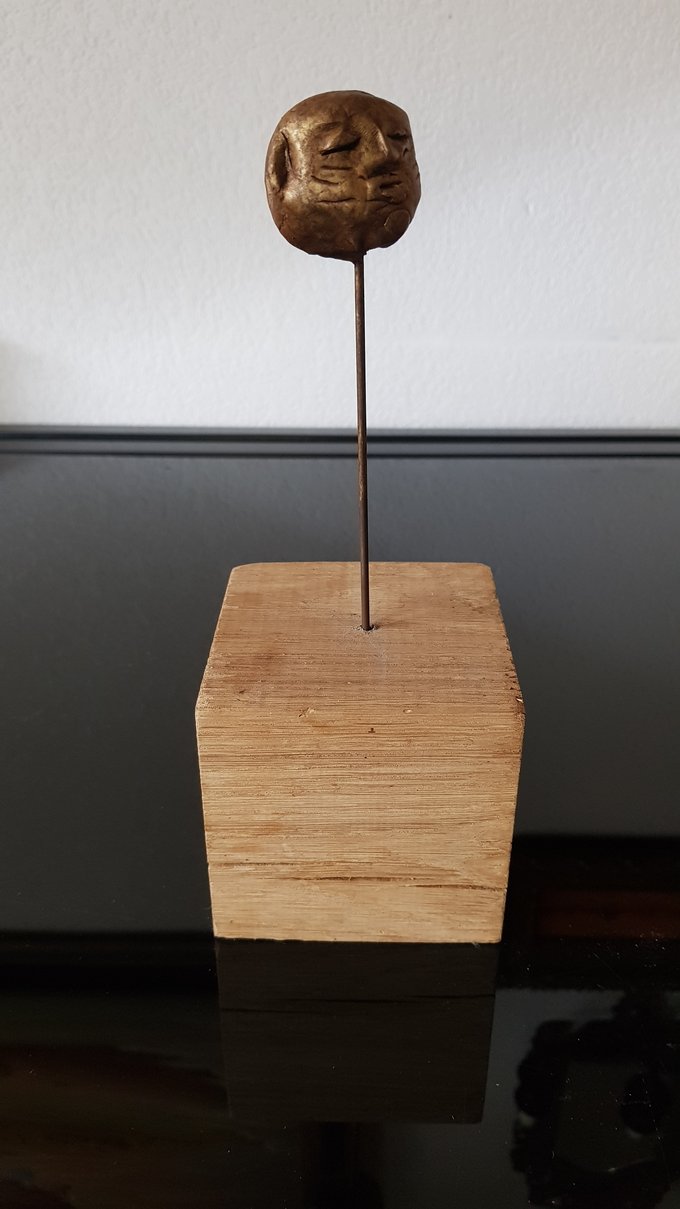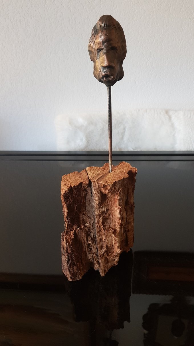 Ces visages sont plus que des portraits. Ils sont les vestiges d’un peuple enfoui – ou en devenir. Ce n’est pas la mort qu’ils disent, mais le passage. Ils nous regardent sans yeux, ils murmurent sans bouche. Ils dorment debout, sur un socle rond comme une offrande ou une racine retournée. Parfois, un visage double se déplie, Janus, gardien des temps, et l’on comprend : ce n’est pas un simple gisant. C’est un seuil.