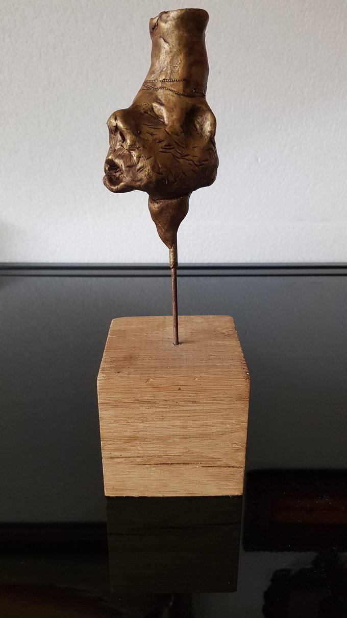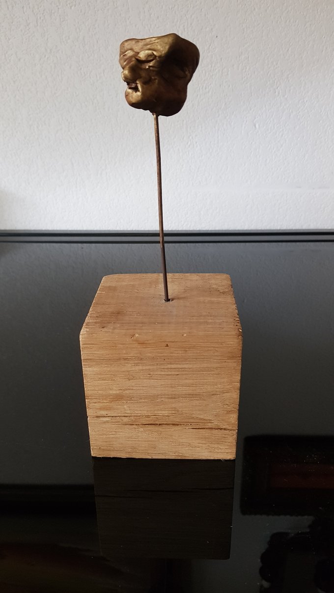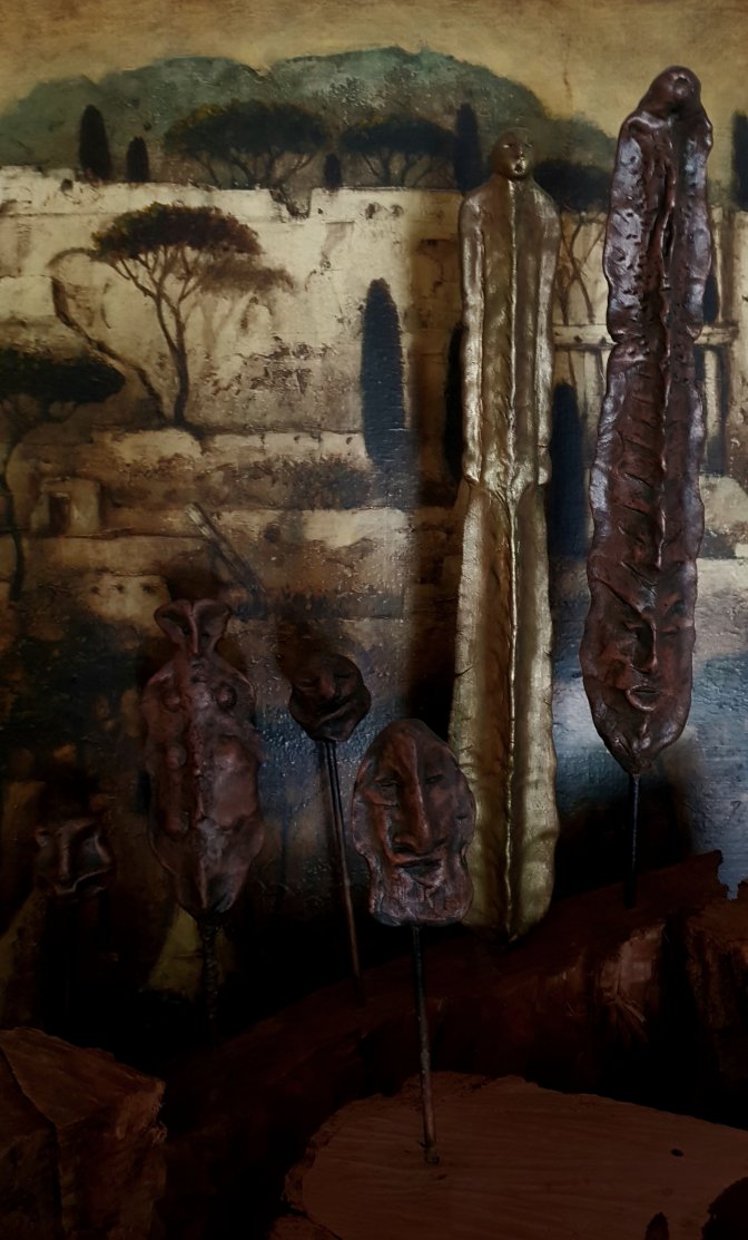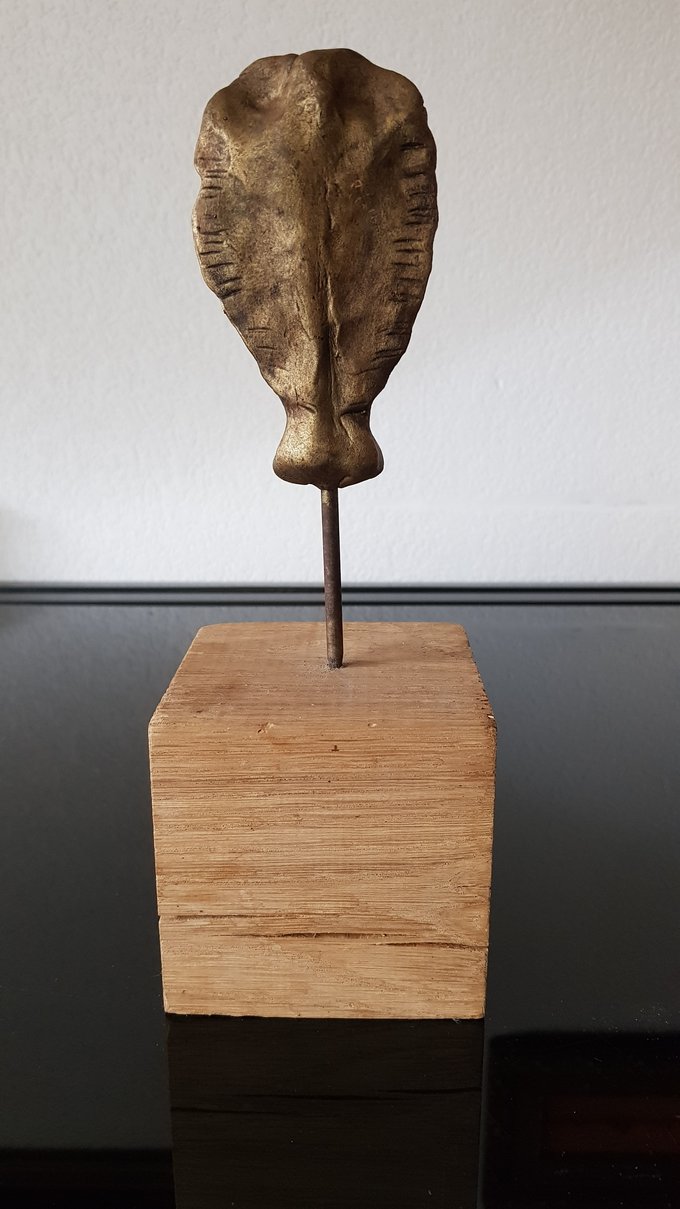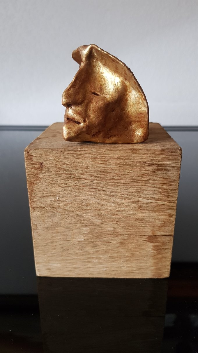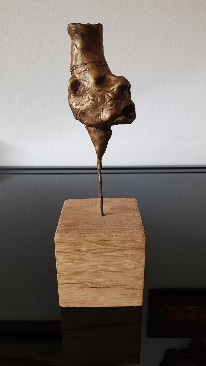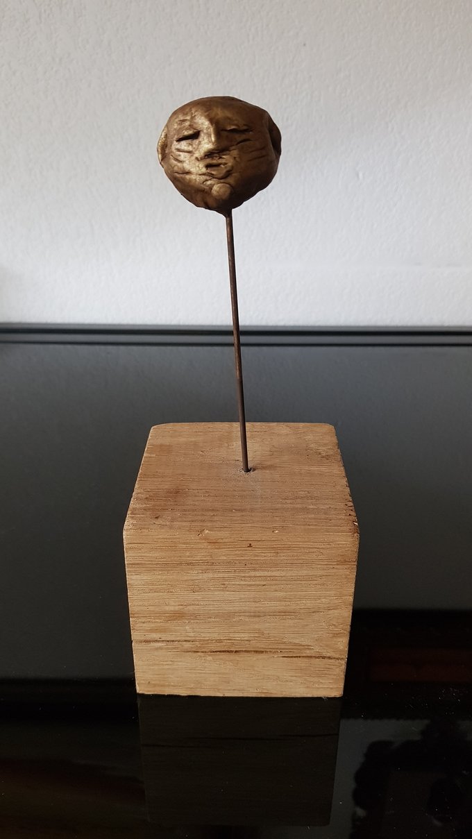 Ces visages sont plus que des portraits. Ils sont les vestiges d’un peuple enfoui – ou en devenir. Ce n’est pas la mort qu’ils disent, mais le passage. Ils nous regardent sans yeux, ils murmurent sans bouche. Ils dorment debout, sur un socle rond comme une offrande ou une racine retournée. Parfois, un visage double se déplie, Janus, gardien des temps, et l’on comprend : ce n’est pas un simple gisant. C’est un seuil.
