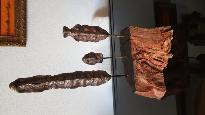 L’homme est là, oui, mais à peine homme. Il est matière revenue à la matrice. Le bois, base rugueuse et chaleureuse, semble vouloir avaler le bronze. Et le bronze résiste, il affleure, il survit. Cela donne à l’ensemble une force mystique, celle d’une lutte très ancienne entre les règnes, entre ce qui veut durer et ce qui doit sombrer. Les sculptures de Lalande tiennent cette tension dans leur mutisme vibrant.