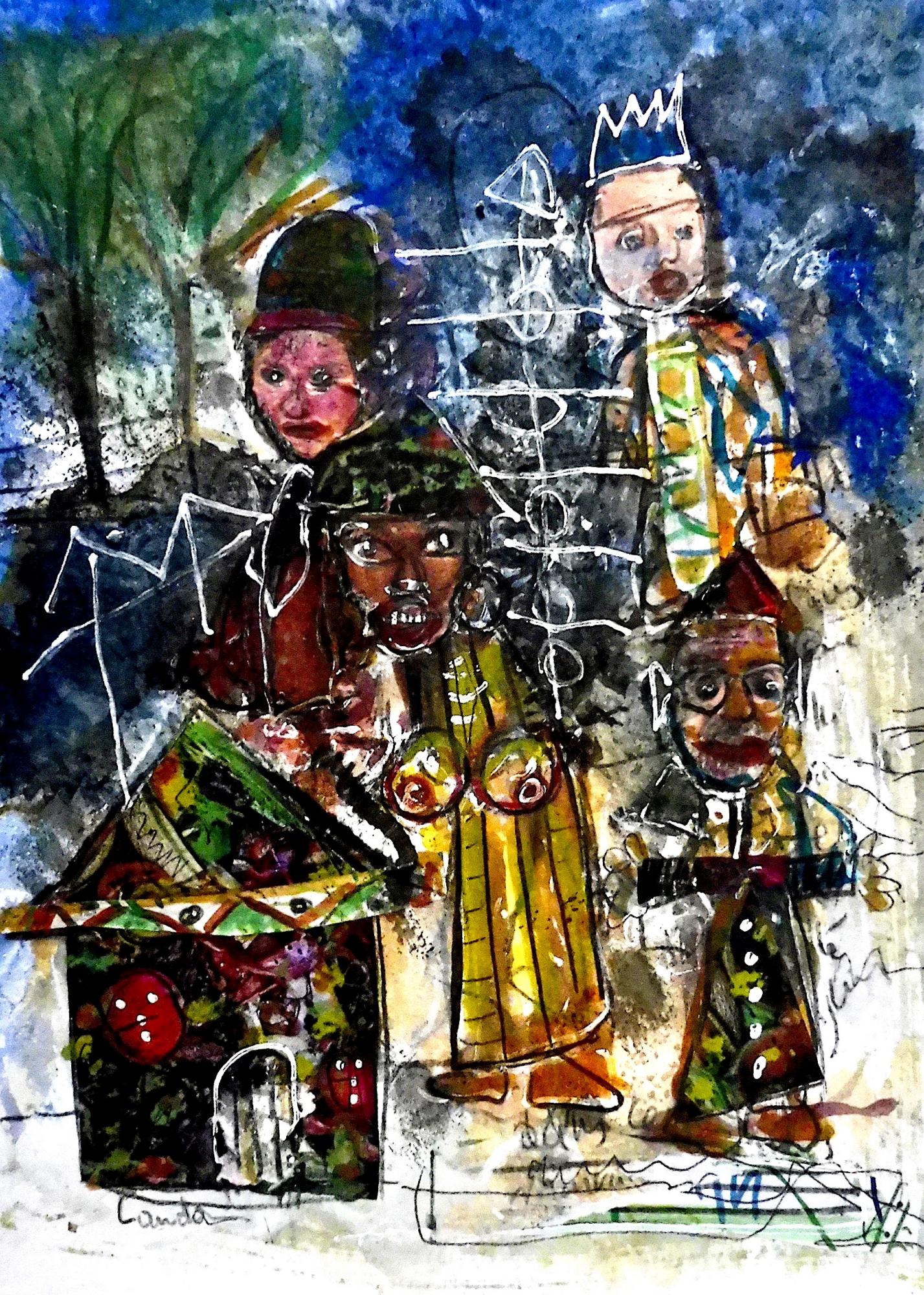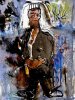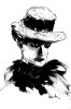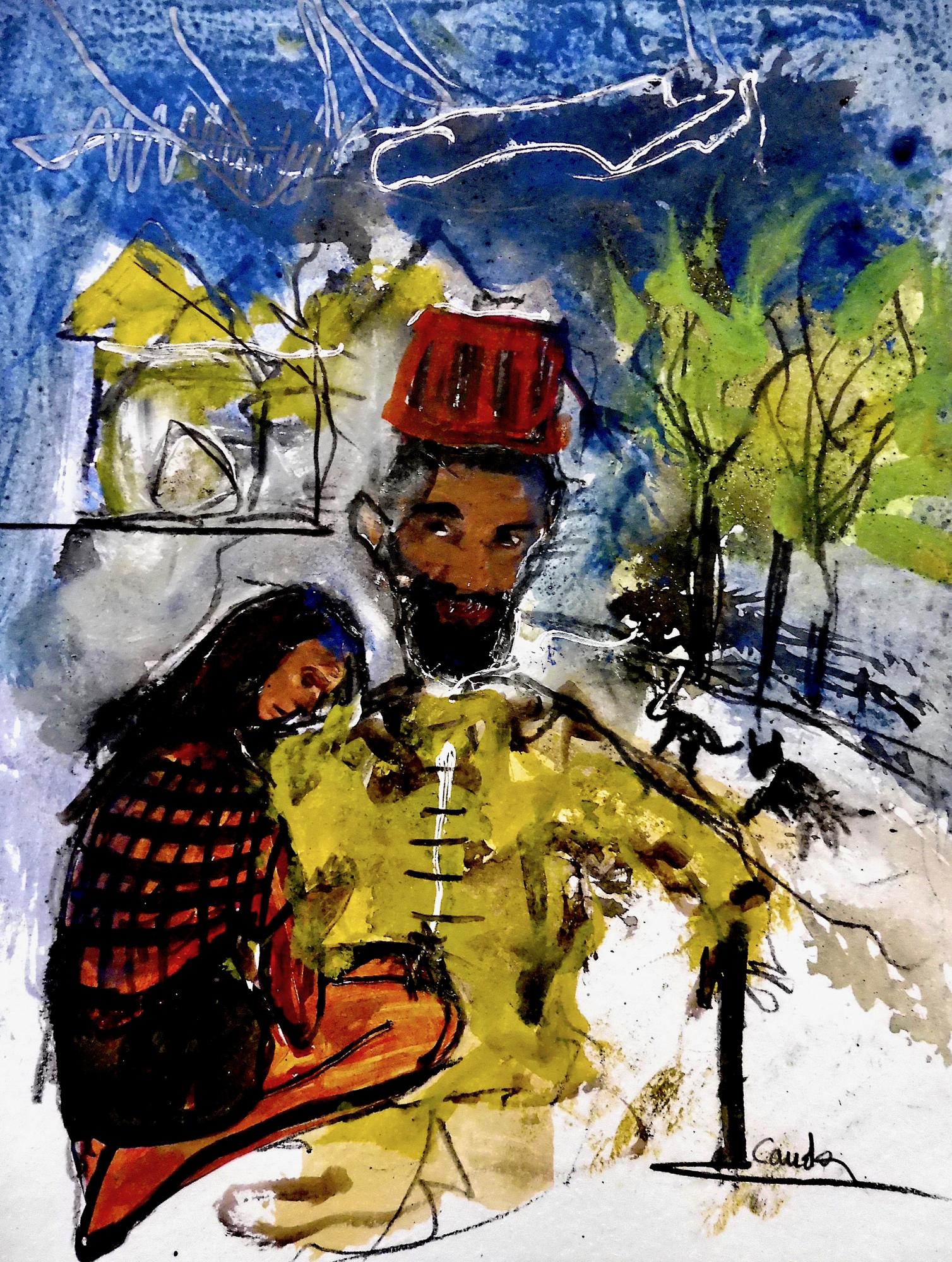 Ce visage n’est pas seulement un visage : c’est un appel lancé au seuil de l’ombre, une respiration suspendue, presque étranglée, entre les plumes noires d’un col et les bordures raides d’un chapeau. Jacques Cauda, une fois encore, refuse de donner au regardeur le confort d’une réponse.