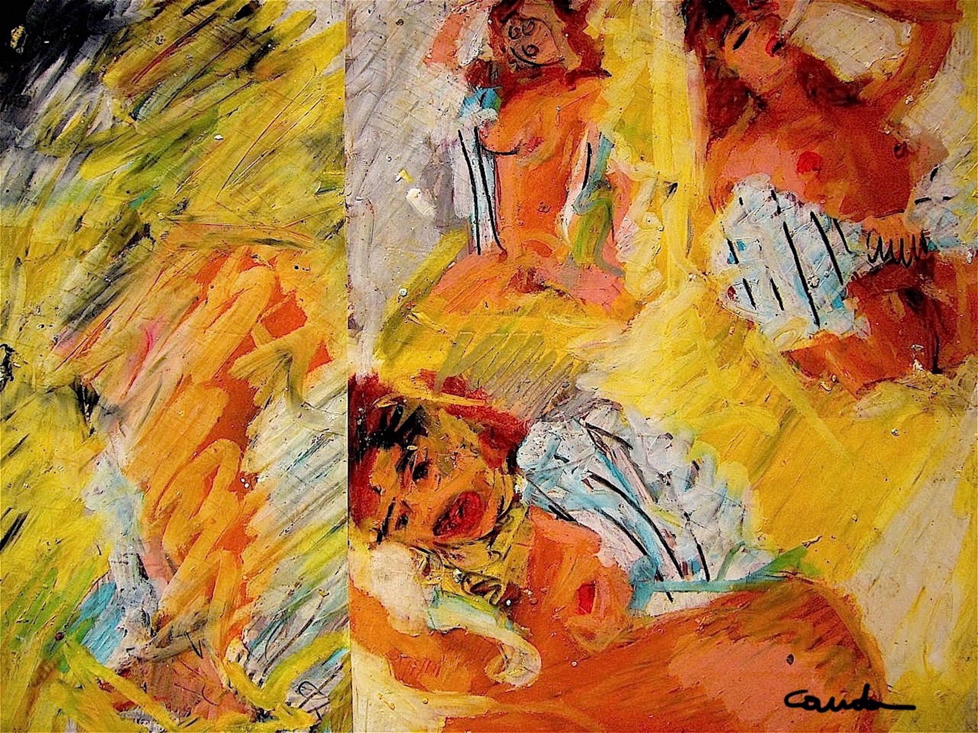 On pense à Colette, à Renée Vivien, à toutes ces figures de la Belle Époque que l’histoire a rangées sous verre. Mais Cauda ne peint pas une époque : il peint une présence. Celle qui persiste sous les couches, sous les dentelles, sous les masques. Une femme. Un mystère.