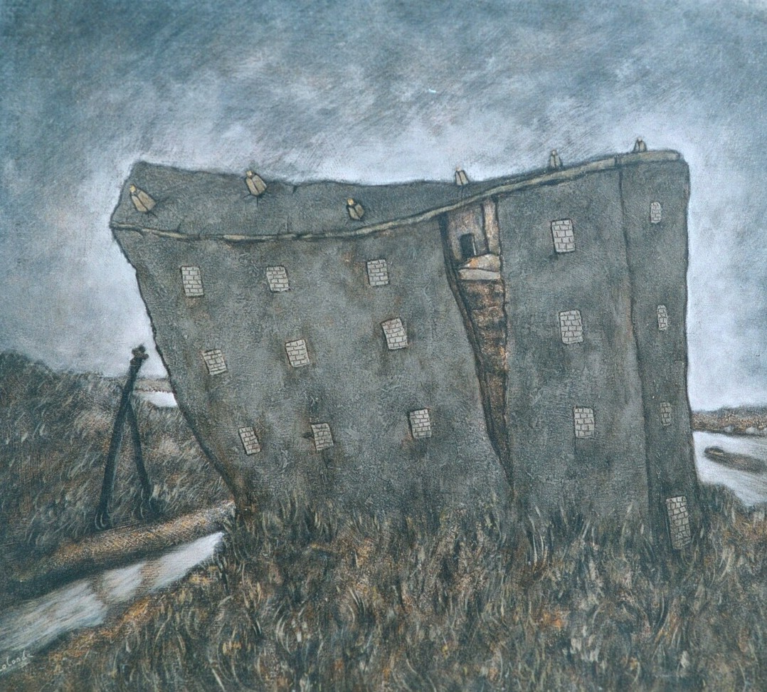 Chaque tableau est une lamentation. Non pas une plainte sonore, mais un murmure enfoui, la mélopée des choses trop longtemps tues. Il y a du sacré dans cette décrépitude. Quelque chose de l’ordre du deuil sans objet. De l’icône retournée. Une spiritualité nue, sans autel, sans clergé, mais pas sans croyance : car il faut croire pour tenir autant dans le vent.