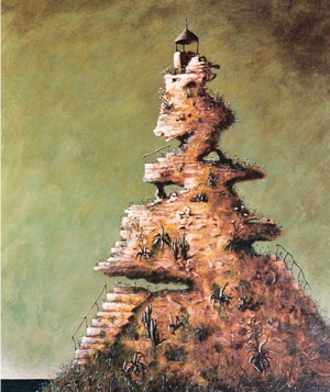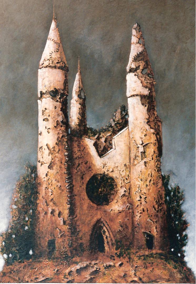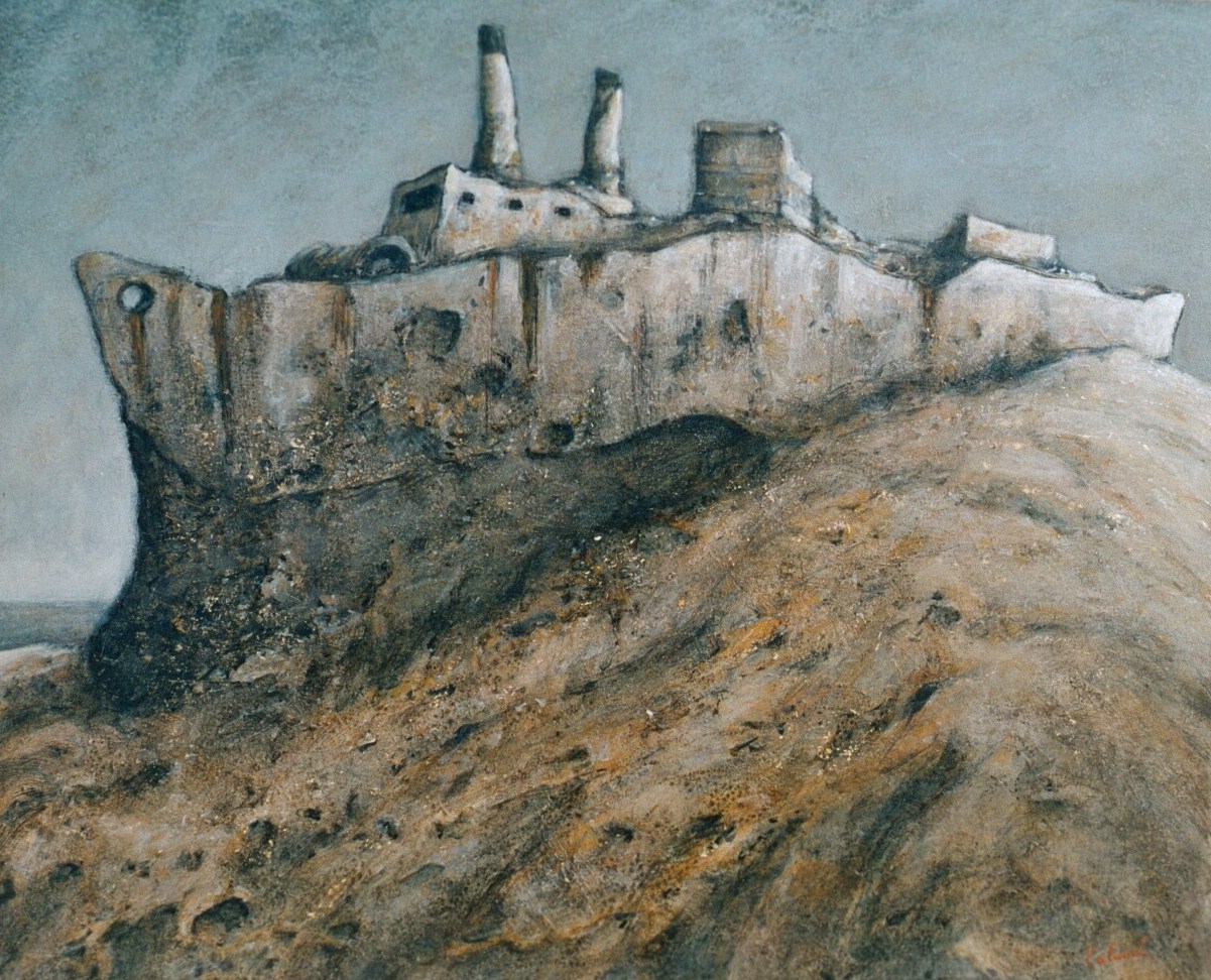 Il y a des architectures qui ne tiennent qu’à l’effondrement. Des cathédrales de suie, des cargos ensablés, des gibets dressés comme des prières muettes. Dans l’univers suspendu de Patrick Lalande, le béton rêve encore, le bois pourrit mais chante, les miradors ne surveillent plus que l’absence. C’est un monde en ruines, mais ce sont les ruines du dedans.