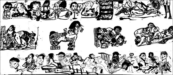 Vêtue de brocatelle à l’abri des étrivières voici ` Une pensée mortelle comme une lettre de Derrière Cause de terribles beautés À la limite cette lettre-pensée fuite par le bout C’est la langue quand cela est Aussitôt l’inconnu diffère et le proche manque aussitôt Puis viennent les sèves ornementales (fairy d’après Rimbaud) Féérie ! c’est donc le jour du jour mat avec un centre évidé La lettre l’appelle le pas encore mais doux si doux neigés Pour dire qu’elle est gorgée de poison vital Coiffée par brassées de clarté L’air et le rêve fraîchissent à portée d’aiguille peut-être Fériale qui sait ? dans le brouillard du palais où l’humide Le dispute aux musiques rose et chair brandies fols bouquets Souffle ô palmes et franchises premières est-ce cela entre Elle et son Autre ? Tandis que l’Esprit se prend au jeu des figements bleu-sentine Le dire décorpore l’écrire : faudrait-il alors raturer le Mot pour le mot et dispenser l’immoral au cœur des oreilles ? Oui ! la bouche sera celle qui dira la surprise et la peur éternelle (L’œil furieux par ailleurs !) Enfin multipliée la Fée-féérie s’ombreporte jusqu’aux pierres qui la Jouent à pilpoul et face autrement Car nous sommes de tout c’est-à-dire un corps Un corps qu’on imagine plein de membres pensants (Pascal, pensée 403)…