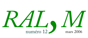 Plan du site | Forum du site | Bienvenue dans le nº 12 de la RAL,M |