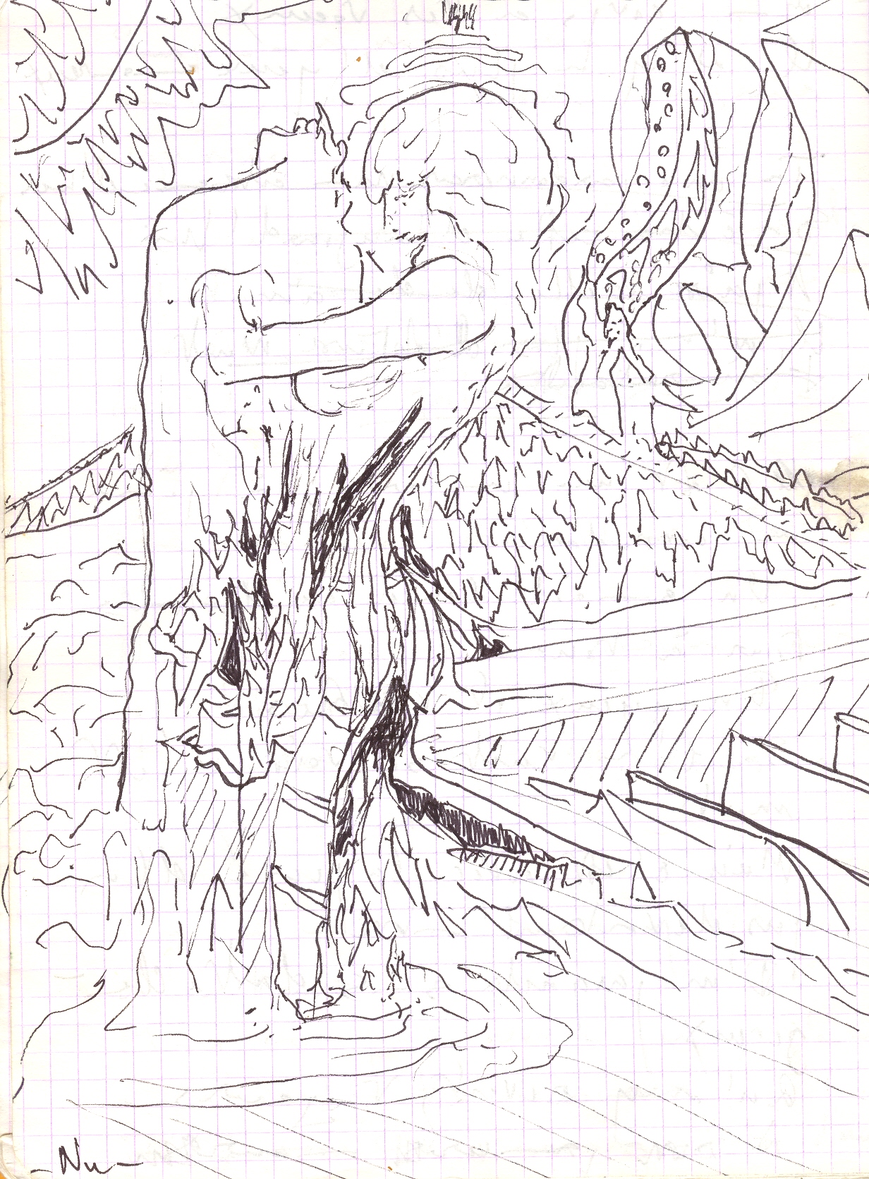Genèse "Je ne suis pas satisfait !" Voilà. Le récit du gamin argenté attablé n’est pas un récit d’origine. Tout le contraire. Un gamin famélique dont la peau argentée peut tromper l’esprit. Pas de Dieu. Pas d’Eve pour cet Adam de mauvaise qualité. La contemplation devint sa seule humanité. GALERIE |